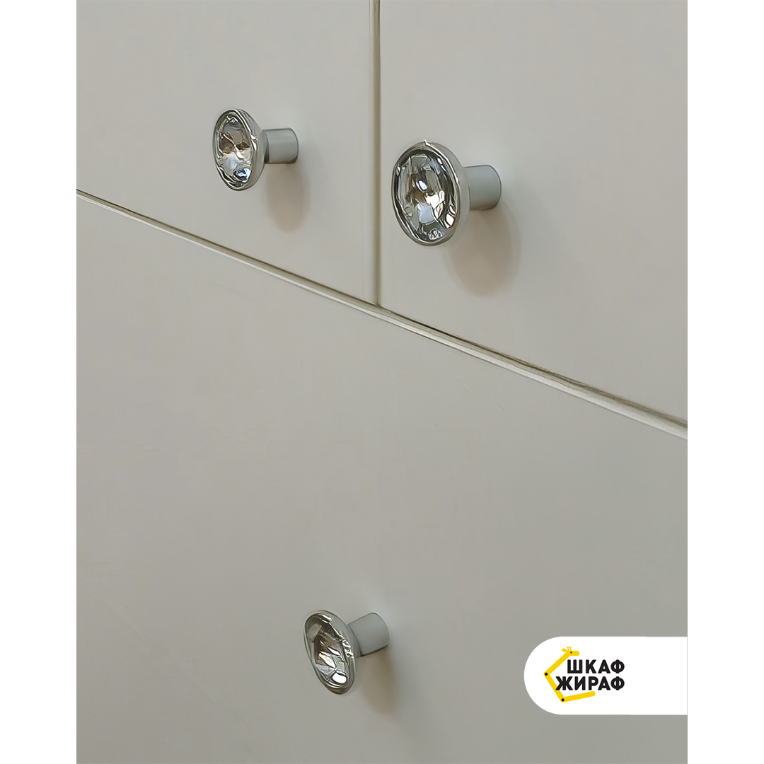 Круглые ручки с кристаллами придают дизайну шкафа винтажную изюминку.